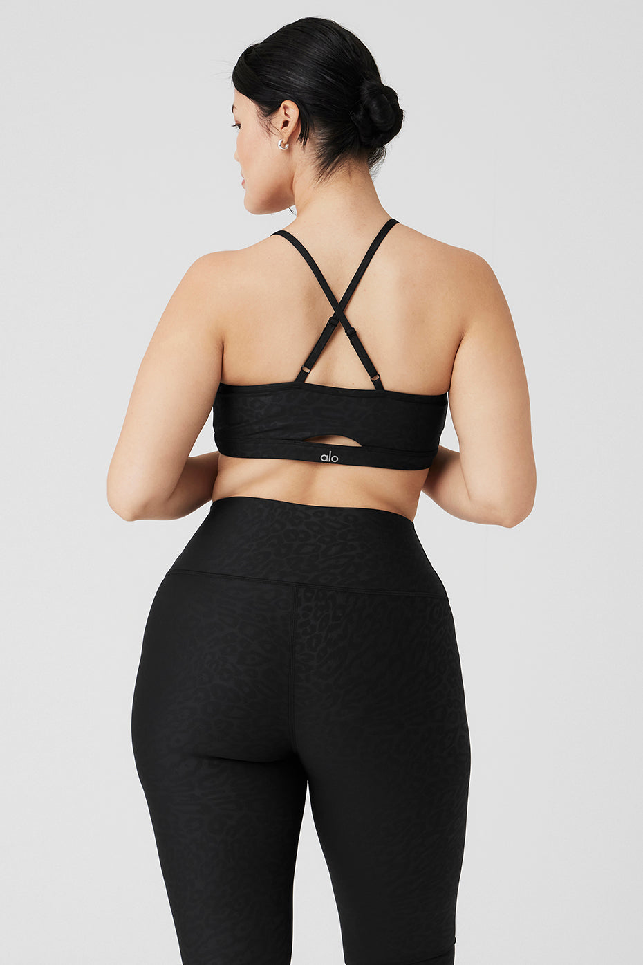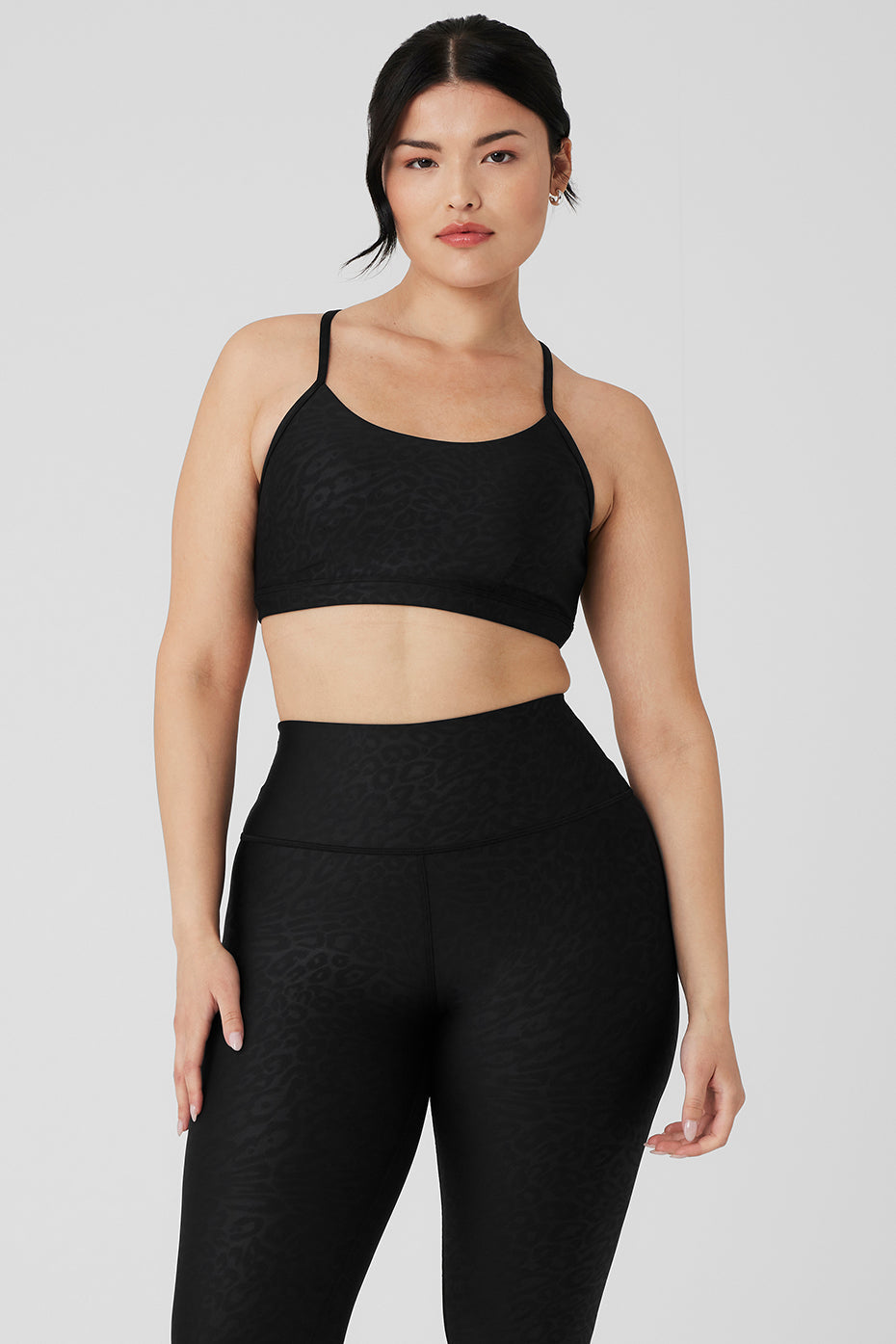 The Airlift Leopard Debossed Intrigue Bra is made in our signature, lifting & smoothing Airlift, with a fierce and playful performance leopard print. A keyhole cutout at the back and adjustable, crisscrossed straps boost this style’s studio-to-street appeal. Go wild head-to-toe with the matching Airlift High-Waist Leopard Debossed Leggings.