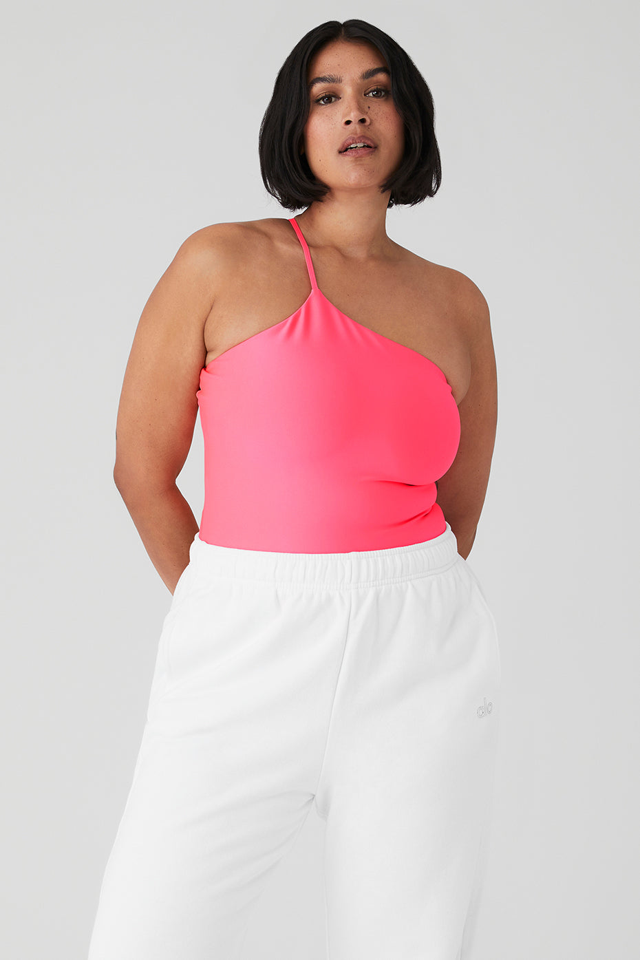 Book that class and suit up in the Airlift Plie Bodysuit. Made from super-sculpting Airlift fabric with a forward, asymmetrical single strap detail, this bodysuit lifts and smooths. Show off the high-cut legs solo or layer under shorts or a tennis skirt for off-the-mat plans.
