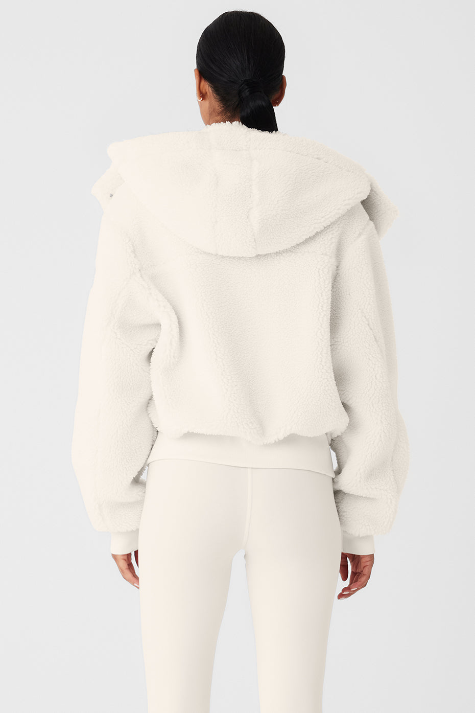 Done in plush sherpa, the Foxy is your new go-to layer. It has a removable hood, a tall collar, a front zipper and cozy ribbing at the cuffs and hem. Fitwise, it’s relaxed with a hip-length hem. Wear it with a cute skirt on the weekend, with sneakers to catch a flight, or over a matching set to walk to your workout. Seriously—it’s that versatile.