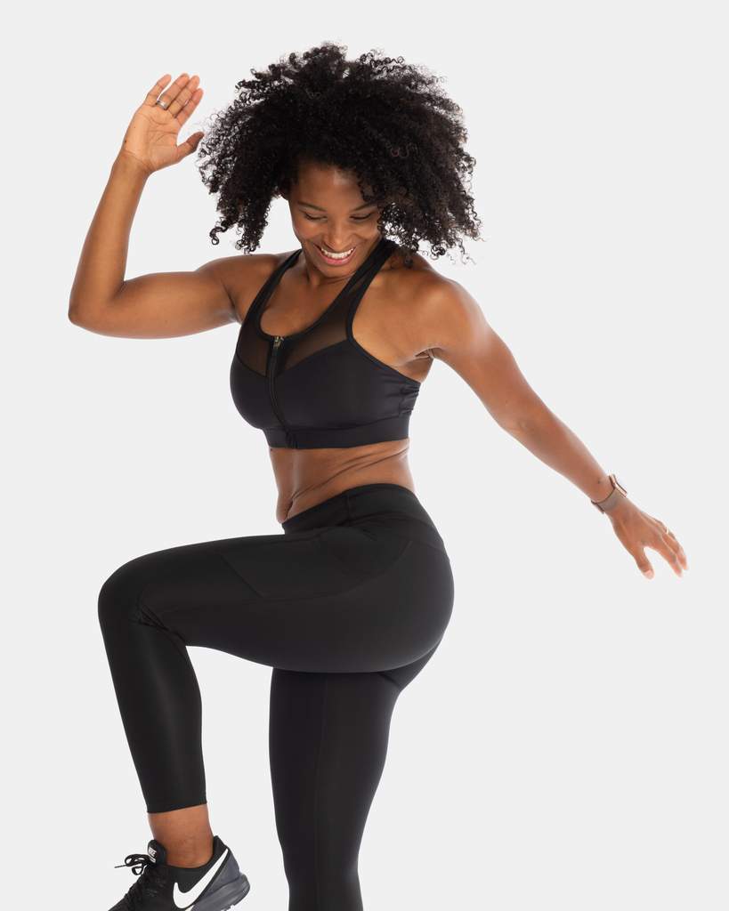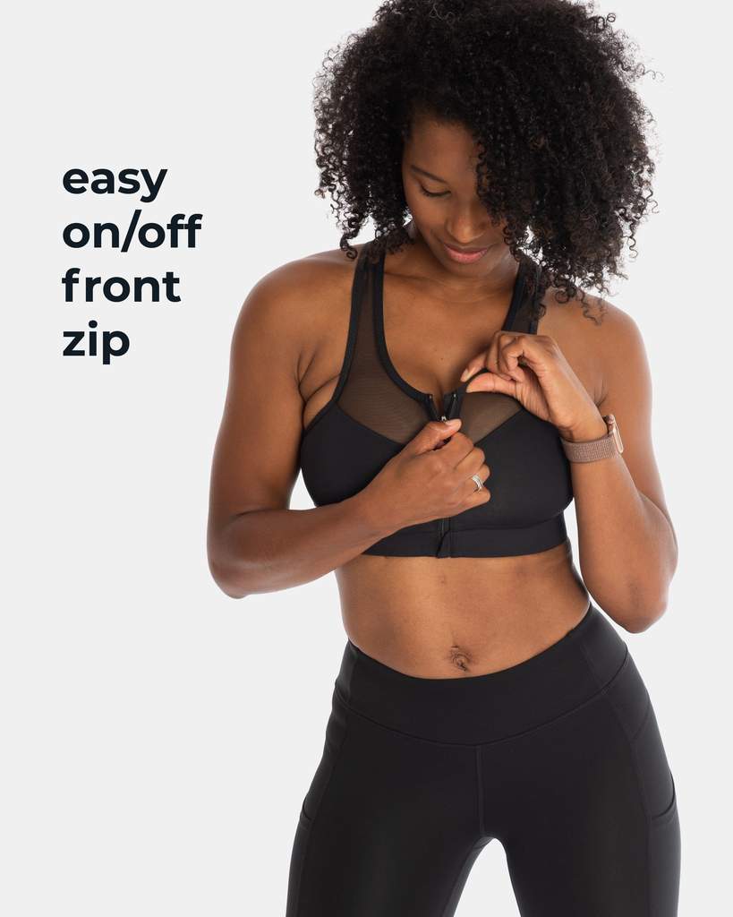 Zip front styling, high impact support