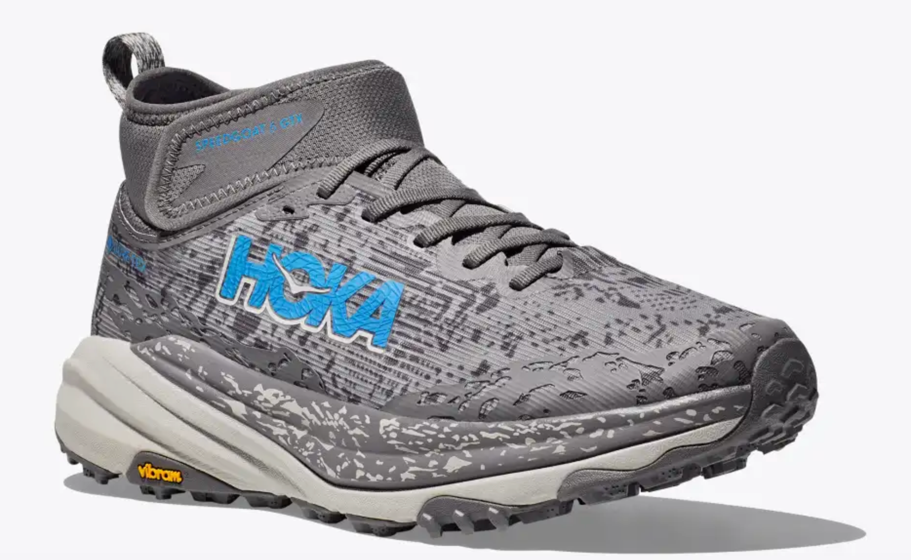 The Speedgoat 6 Mid GTX is built with the same trust-inspiring waterproof GORE-TEX membrane as before—but now with a more flexible, running-friendly collar. Grounded in Vibram® Megagrip with Traction Lug for enhanced bite on loose soil, this trail icon employs a foot-cradling heel bolster, lightweight, responsive midsole compound, and a protective toe rand for charging through the rough stuff. Bring it, weather.