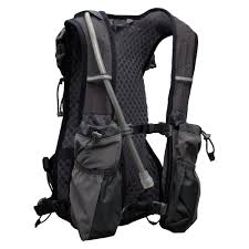 1.5L bladder and hose and multiple front pockets for additional storage, like soft flasks.