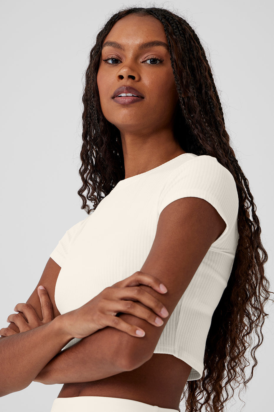 Ribbed Sea Coast Cropped Short Sleeve Tee - Ivory