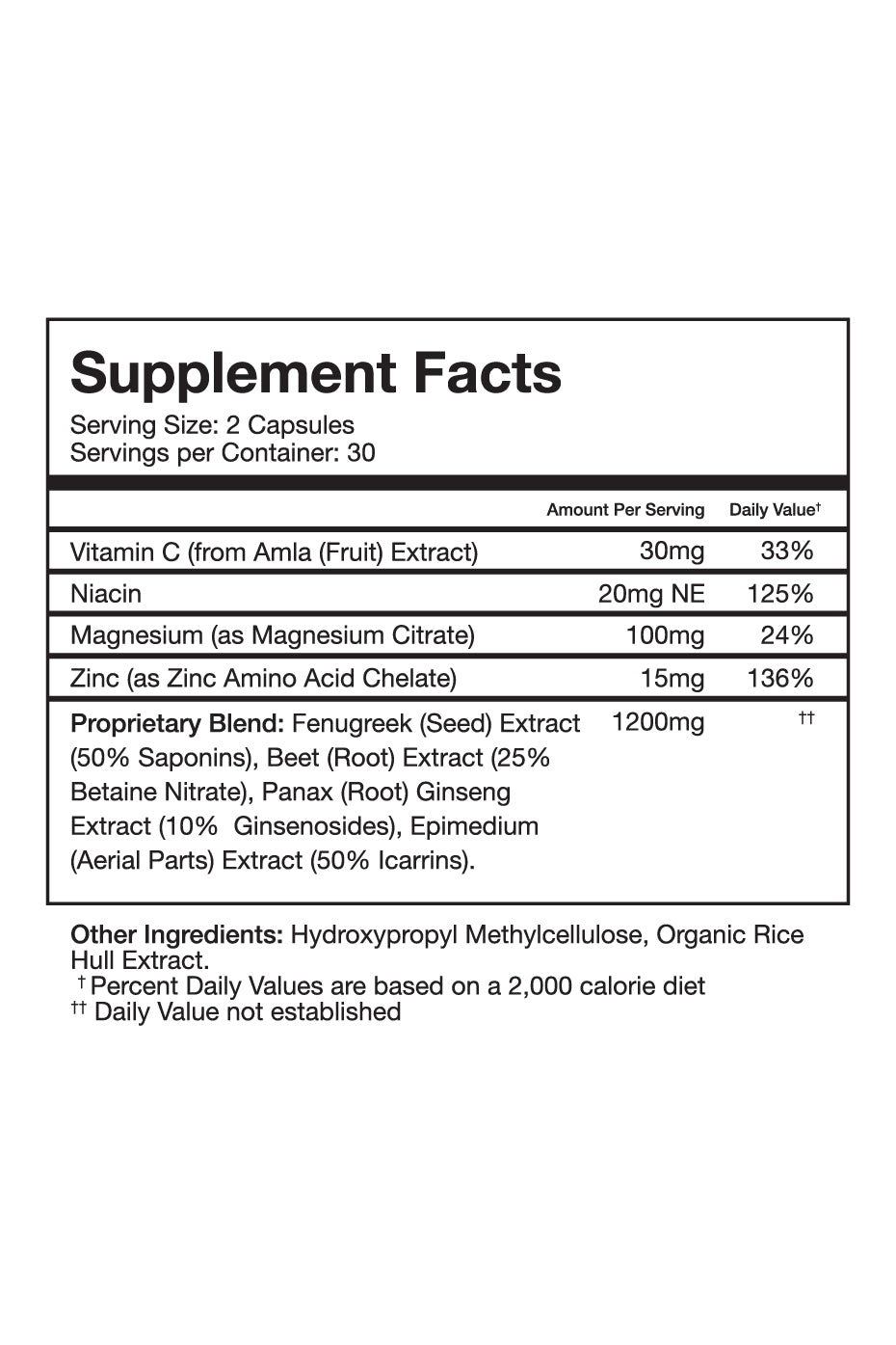 Daily use helps support increased libido and sex drive, thanks to potent ingredients that promote blood flow and support endurance—like horny goat weed—and play a crucial role in maintaining healthy testosterone levels—like niacin and zinc.