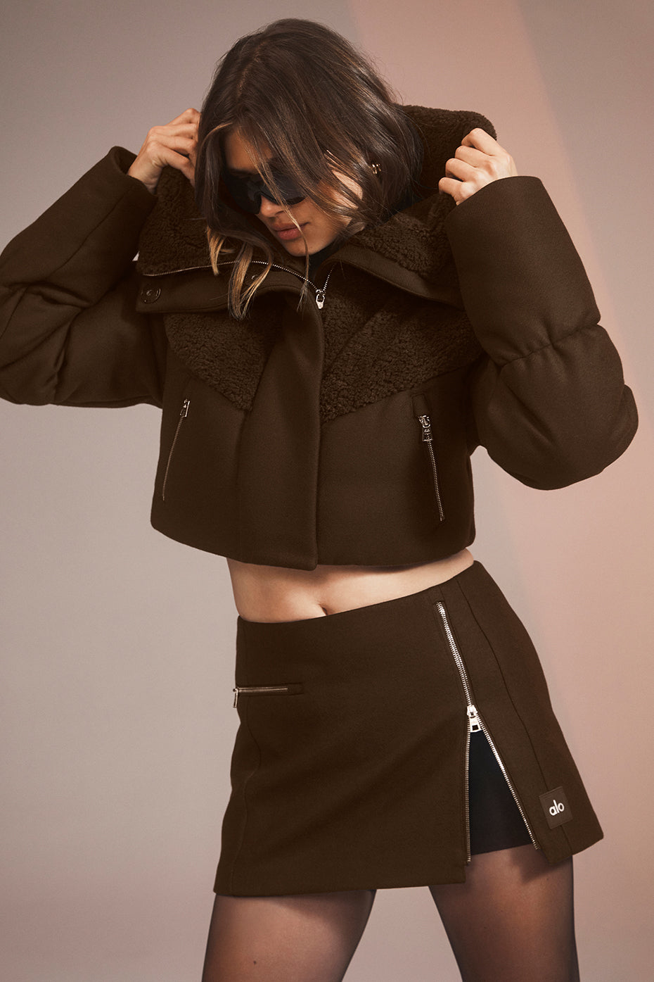 Cool enough for après ski and warm enough for the city streets, this puffer is winter’s MVP. Done in a softly structured wool blend, it’s finished with snuggly faux fur (at the foldover collar, front yoke and back yoke) for subtle contrast. A waist-length crop keeps the boxy cut from overwhelming your figure, and a zipper-and-snap front plus slick zippered pockets are functional finishing touches. The only way you can go wrong? Not getting the matching Vendome Mini Skirt.