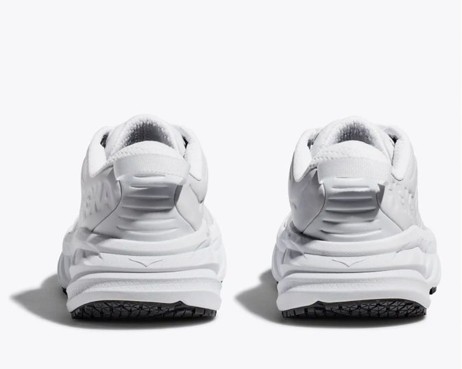 The Bondi SR takes the most cushioned shoe in the HOKA road-shoe lineup and reworks the silhouette to handle the demands of daily life. Updated with water-resistant leather, a slip-resistant outsole and EVA midsole to ensure all-day cushion, this workplace warrior features an ultra-grippy, full ground contact rubber that stands up to the demands of the service industry and medical field alike.