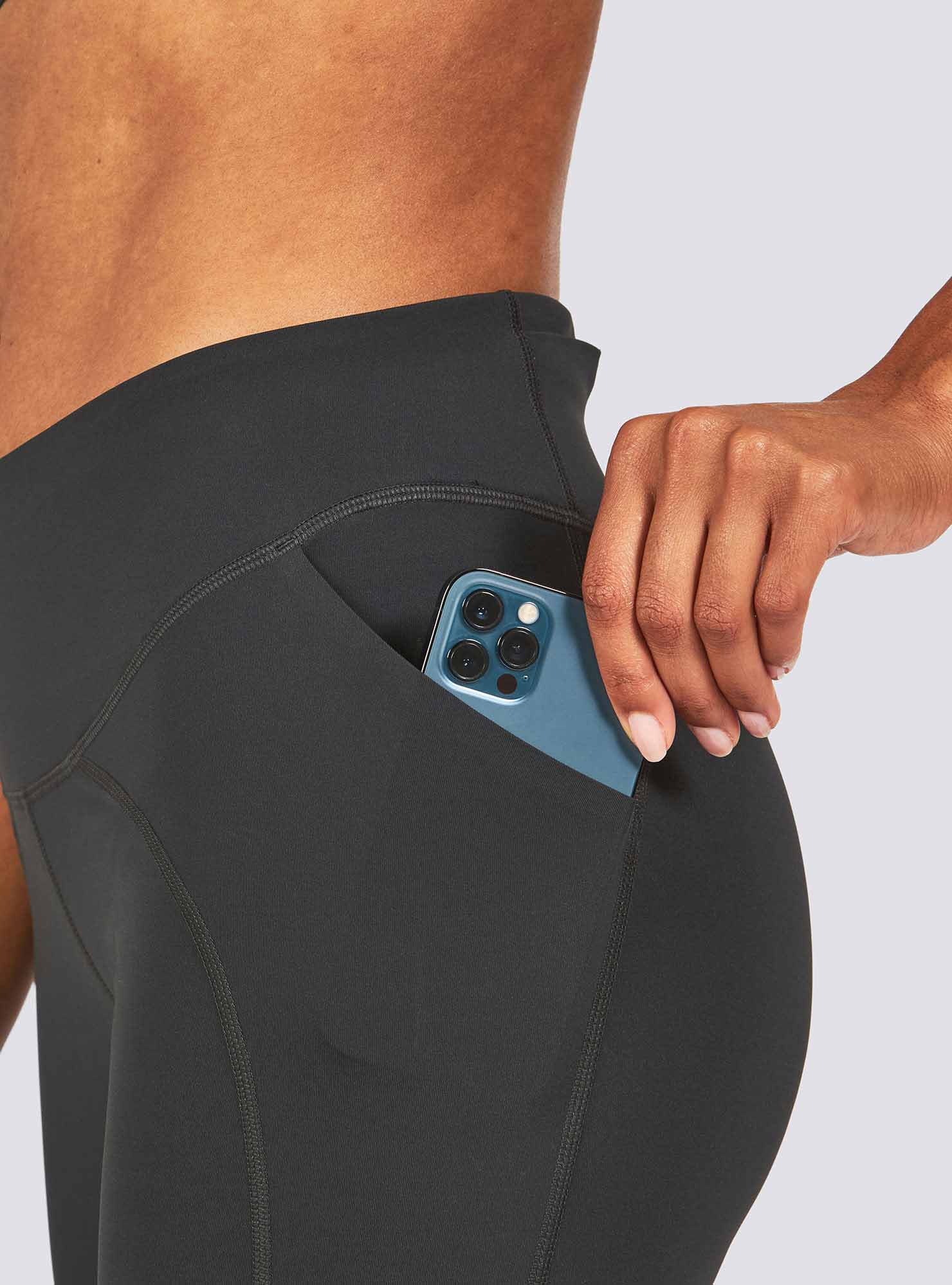 An internal waistband pocket can stash card/cash or key