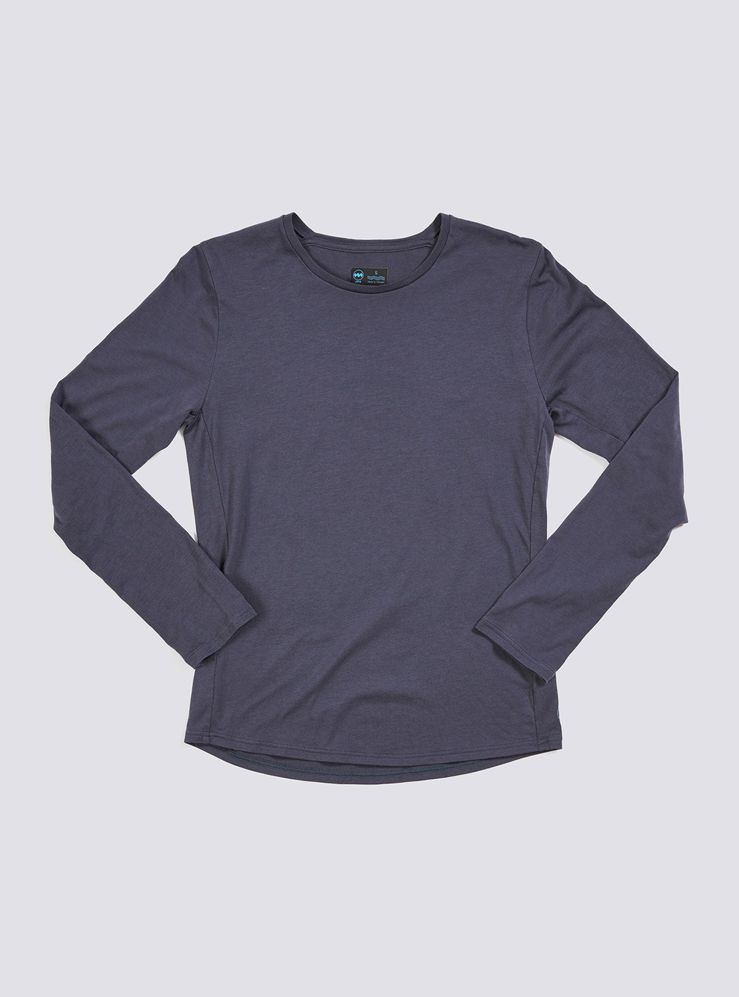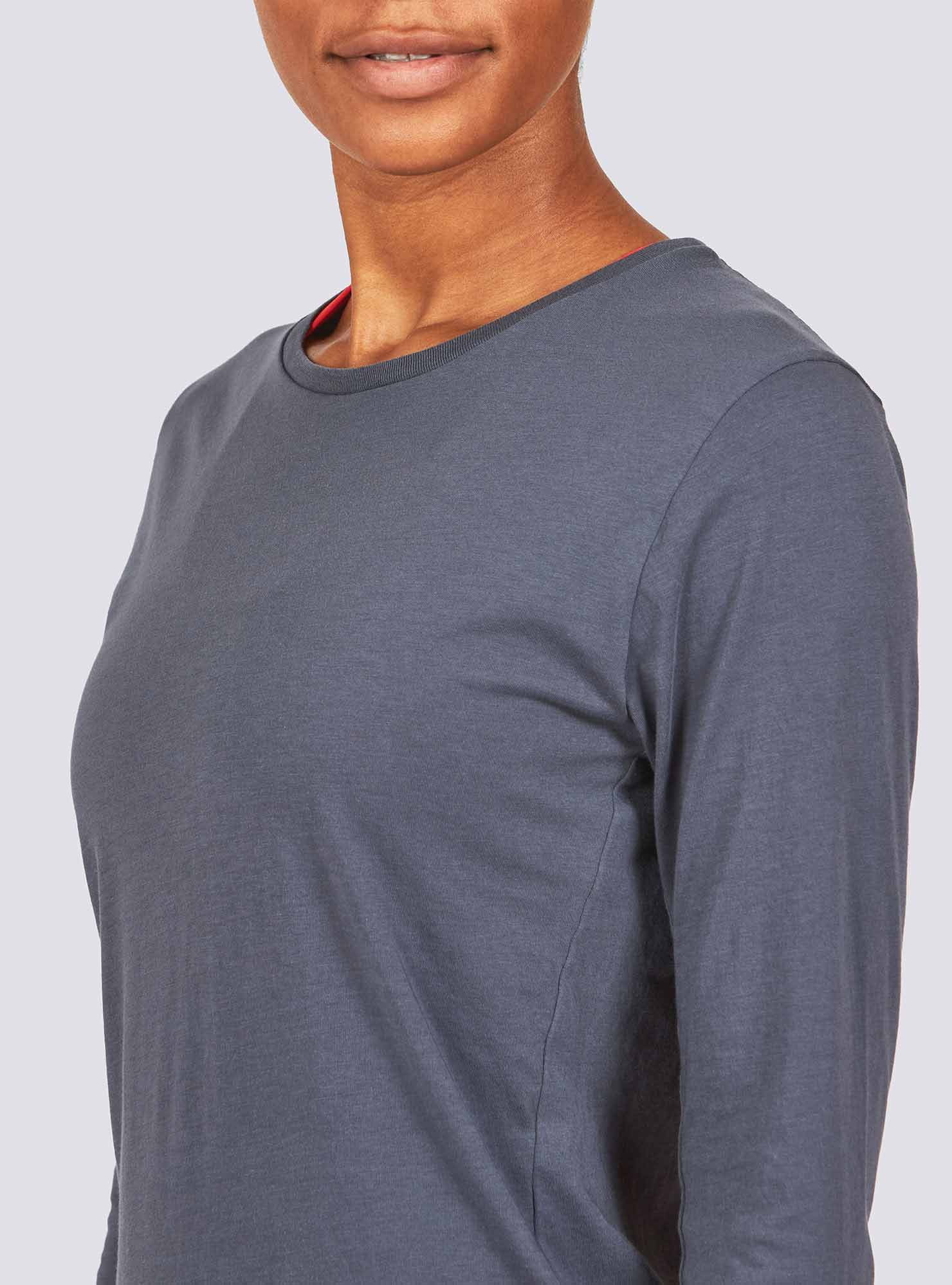 Signature raglan sleeve design keeps seams off the top of the shoulders for comfort