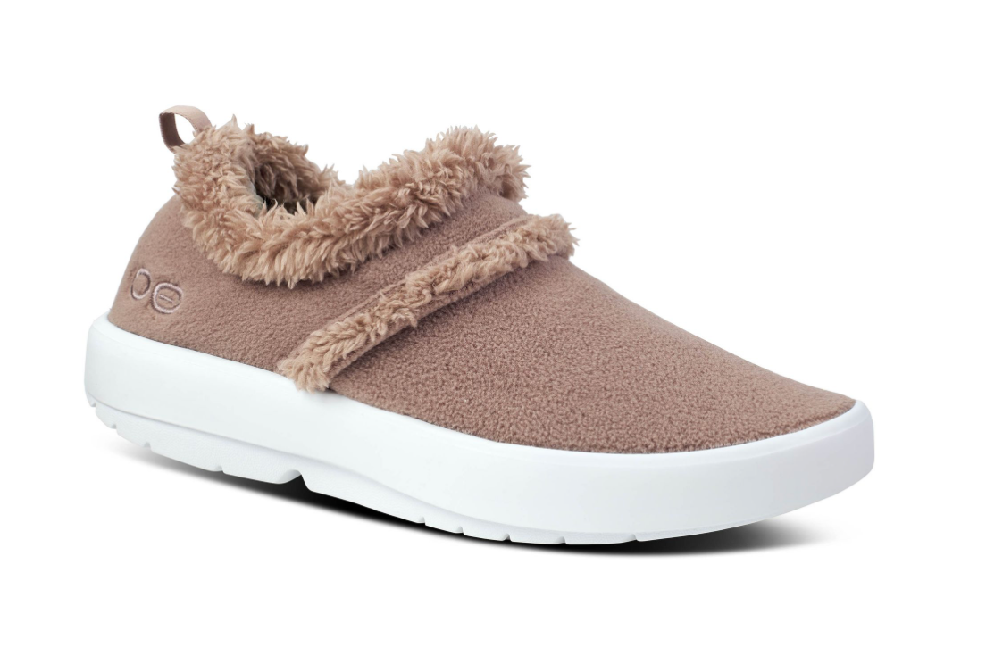 The OOcoozie provides the perfect blend of cushion and stability for both indoor lounging and quick errands out. The upper is constructed with a warm vegan sherpa material that is both recyclable and machine washable. Like all OOFOS products, it has our unique one-of-a-kind OOfoam™ technology that absorbs impact, so your body doesn’t have to. Add in the patented footbed design that cradles and supports arches and you’ll recover faster. Active recovery with the soft, cozy warmth you desire in a versatile hygge style.